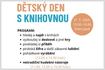 V sobotu 1.6. jsme se s námi mohli setkat na Dětském dnu v parku. Počasí nám nakonec přálo a užili jsme si diskotéku, tvoření i pohádku. Děkujeme za pomoc dobrovolnicícm ze ZŠ Mládeže. Pokud máte rádi venkovní akce, uvidíme se v pondělí 10. června na Knihovně v parku.