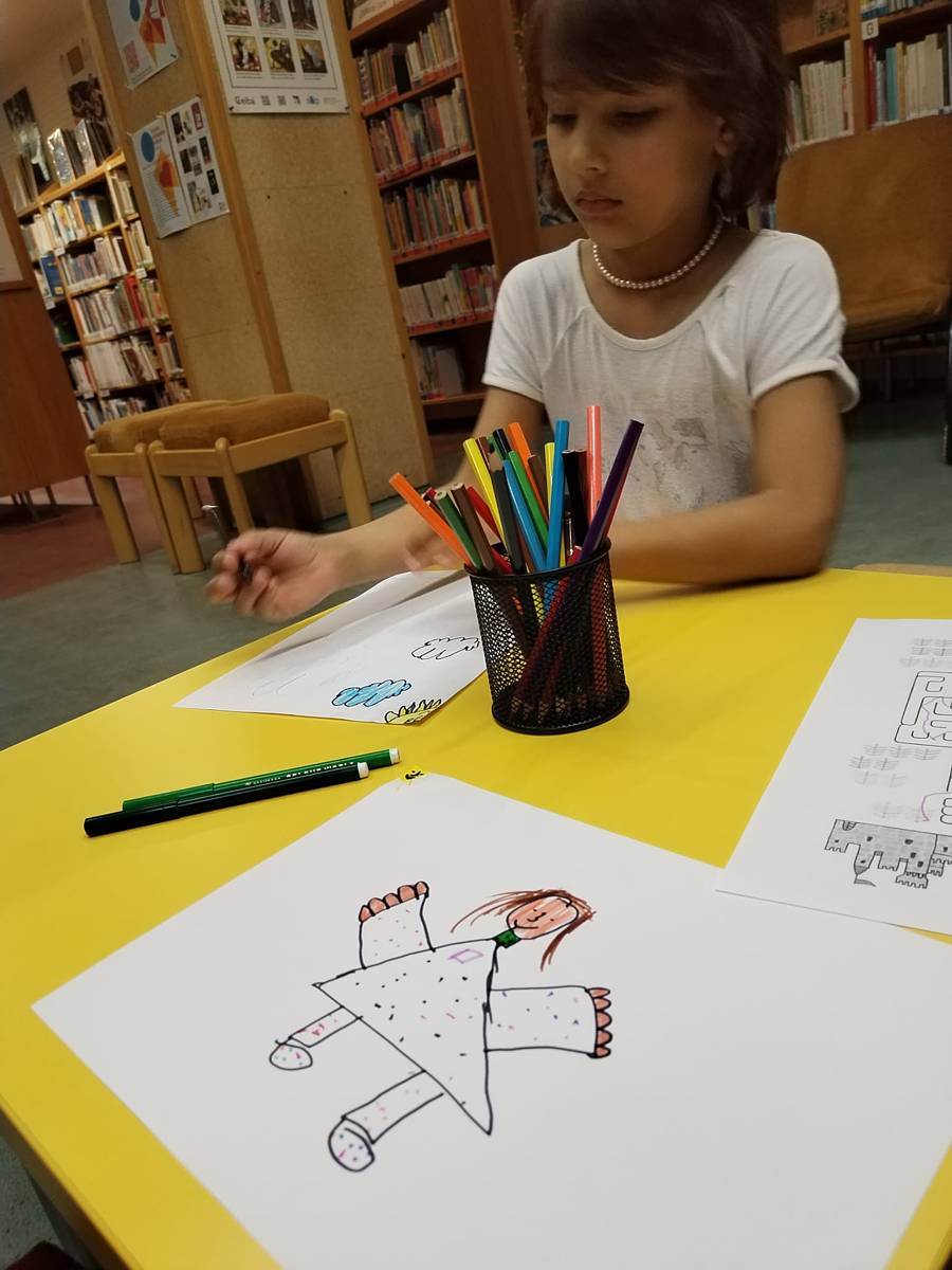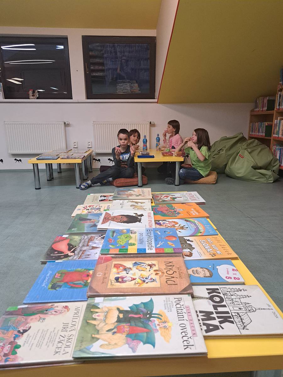 Děti se seznámily jak s Hansem Christianem Andersenem a s jeho díly, tak s Jiřím Žáčkem, který letos slaví 80. narozeniny. Společně jsme četli, hádali hádanky, doplňovali lidová rčení, ale také malovali, hráli hry a chytali duchy. Asi největší odezvu měla výprava noční knihovnou, kdy jsme pouze za svitu baterek prozkoumali všechna oddělení, hledali ukrytá zvířátka (a procvičovali paměť po návratu do dětského oddělení) a zjišťovali, zda je pověst o knihovním duchovi Albrechtovi pravdivá či ne…