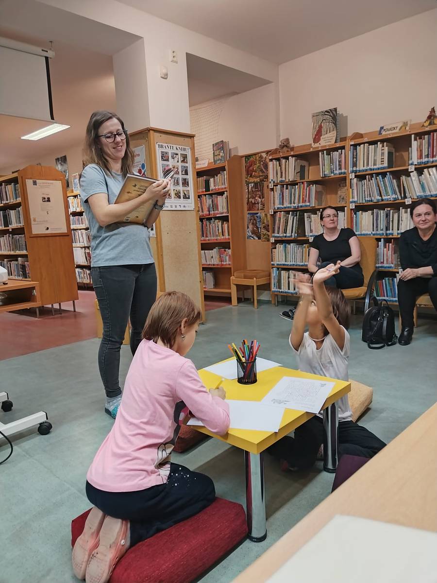Paní autorka představila posluchačům z páté třídy většinu svých dětských knih. Nejvíce dokázala zaujmout poutavým vyprávěním o napínavé sérii Sesterstvo. Dále děti nalákala i na trilogie Mnohokluk a Projekt pes. Většina dětí dobře zná i její Bylinkovou babičku a seznámili se i s nejnovější dobrodružnou knihou Barabizna, která je inspirována příběhy Rychlých šípů.