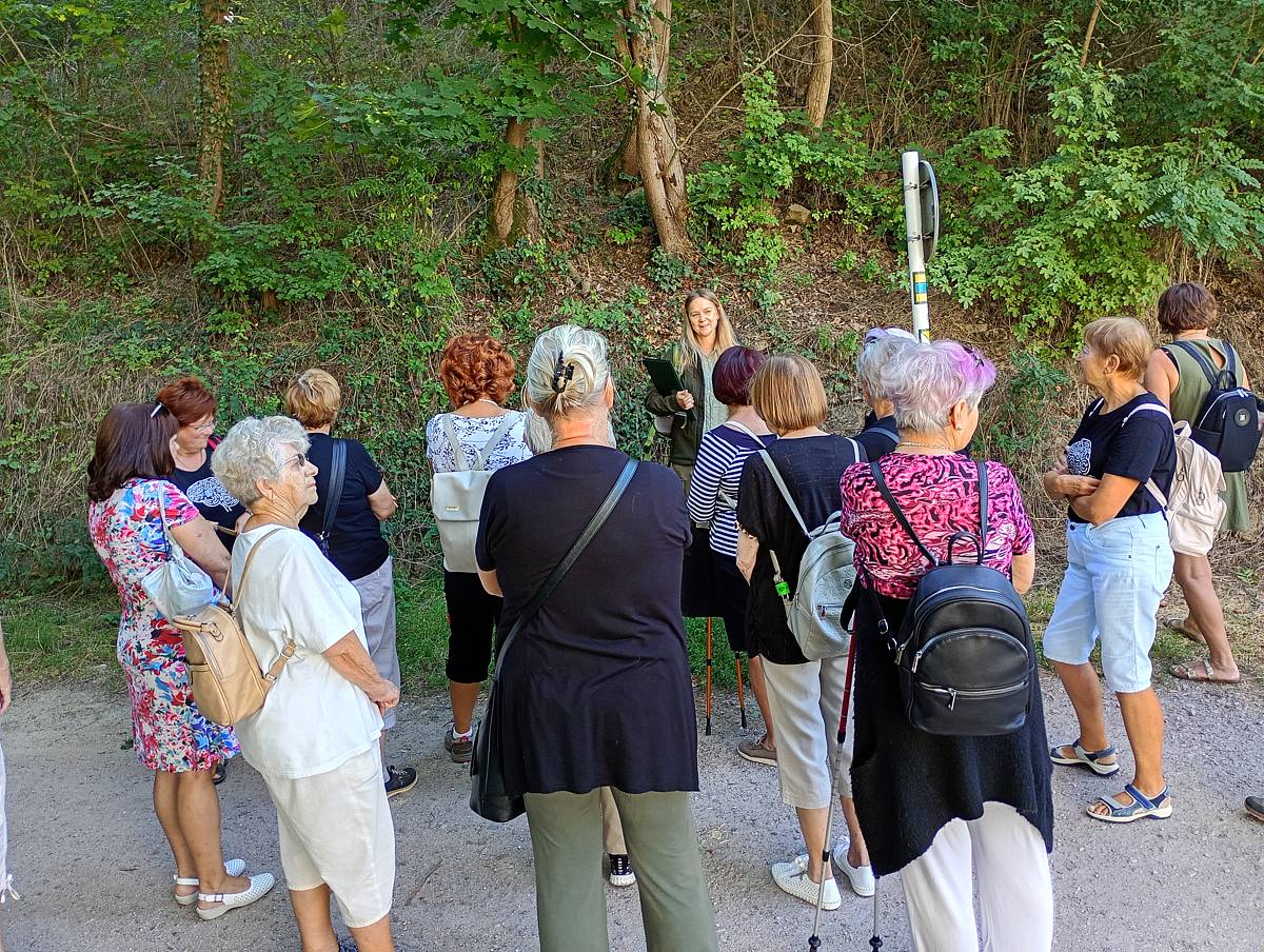 Po klidném zahájení dne u kávy v sále knihovny se účastníci vydali městskou hromadnou dopravou k mostu přes řeku Dyji a pokračovali pěšky ke zvoničce na okraji Gránic, kde už je očekávala Ing. Jana Trojanová z Městských lesů Znojmo. Tato příspěvková organizace města Znojma se věnuje mimo jiné vzdělávání všech generací a různým formám lesní pedagogiky. Poutavý a erudovaný výklad paní Trojanové, jímž doprovodila společnou vycházku, seniory doslova nadchl. Každý si odnesl mnoho poznatků – o historii Gránic, jedlých rostlinách v lese, přírodní kosmetice nebo třeba tvorech, jako je klíště obecné či lýkožrout smrkový, kteří, ač se nás lidí dost natrápí, jsou ve skutečnosti fascinující. Ještě důležitější než poznatky byl však zážitek bezprostředního kontaktu s přírodou a její léčivou energií.