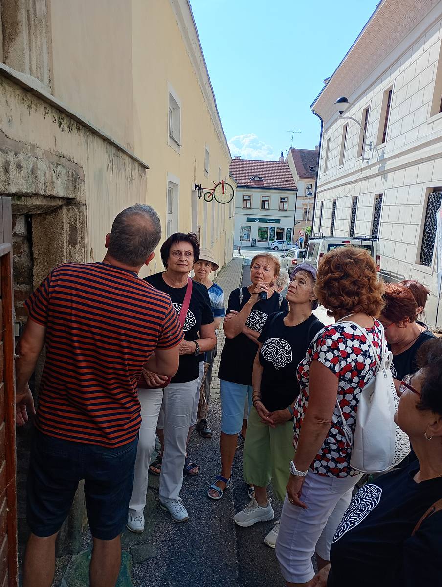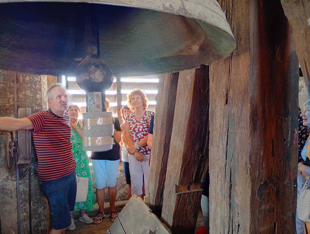 Ráno se účastníci sešli v konferenčním sále knihovny u kávy a po deváté hodině vyrazili na procházku za znojemskými zvony. Průvodcem jim byl pan Ing. Ondřej Lazárek, který poutavou formou představil nejprve největší zvon ve Znojmě, který se nachází ve věži při kostele sv. Michala, a následně soubor čtyř zvonů v kostele sv. Kříže, z nichž tři byly odlity teprve nedávno, v roce 2022. Účastníci se dozvěděli řadu nových a překvapivých informací jak z historie Znojma a samotných zvonů, tak z oblasti kampanologie, tedy vědy o zvonech. Výstup na obě věže i blízký kontakt se zvony a jejich tóny byly silným zážitkem, který v každém dozníval ještě během celého dne.