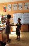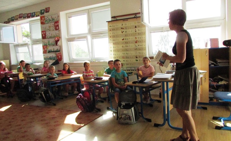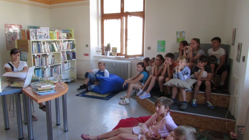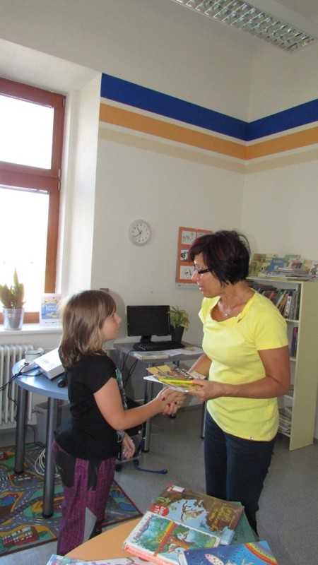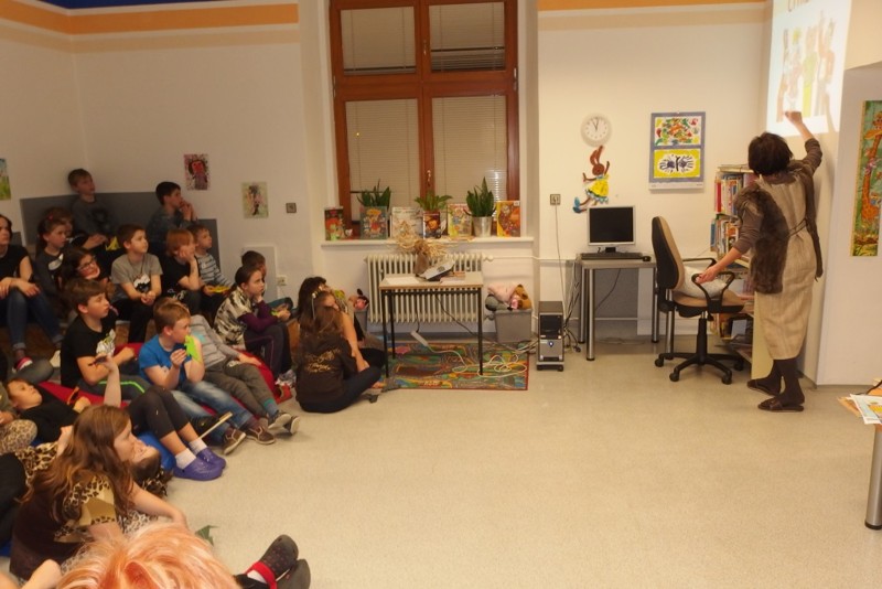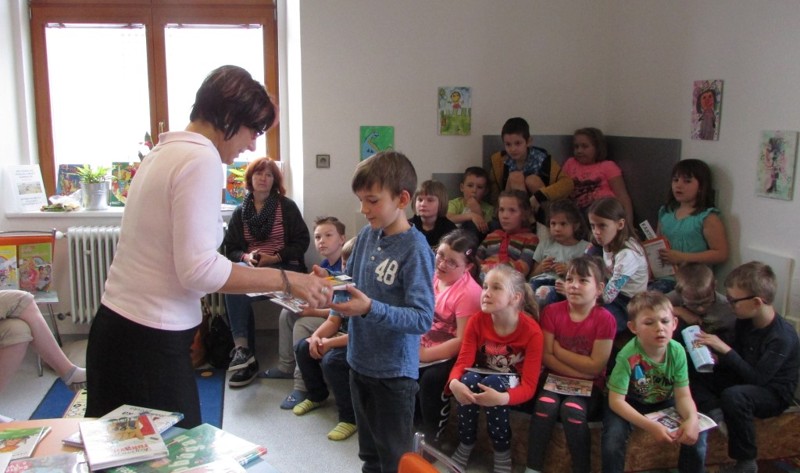Městská knihovna Moravský Krumlov navázala již podeváté na projekt Knížka pro prvňáčka dalším projektem nazvaným Celé Česko čte dětem aneb Škola naruby. Tento projekt byl určen žákům druhých tříd, kteří byli v předešlém školním roce pasováni na čtenáře a ukončili tak první projekt s názvem Knížka pro prvňáčka. Projekt byl zaměřen na podporu čtení a pravidelné četby doma i ve školách ve spolupráci s Městskou knihovnou Moravský Krumlov. Do projektu se zapojilo 102 žáků druhých tříd místních i okolních škol. Od malých školáků jsme se dozvěděli, nejen z jakých knížek četli svým rodičům, prarodičům, mladším sourozencům, jak dlouho četli a jaké dostávali ze čtení známky, ale také to, jaké oni rozdávali známky, když jim četl třeba pan starosta, paní učitelka nebo pan ředitel. Nejvíce je bavilo čtení, když si některý z rodičů přinesl svoji oblíbenou knížku z dětství a z té svým dětem četl –např. tatínek z knihy Bylo nás pět nebo dědeček z knihy Čuk a Gek. Na konci školního roku byl vybrán z každé třídy nejlepší čtenář a ten byl odměněn knížkou Miloše Kratochvíla Školníci a pěknou záložkou. Všichni zúčastnění dostali za svoji snahu záložky a sladkou odměnu.