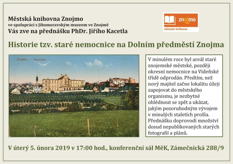 Historie tzv. staré nemocnice na Dolním předměstí Znojma, PhDr. Jiří Kacetl 5.2.2019