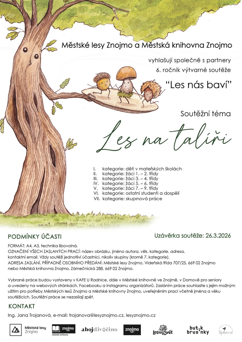Literární a výtvarná galerie 21. říjen 2025 Zobrazení: 22 Výtvarná soutěž Les nás baví, tentokrát na téma „Les na talíři“ Vytisknout E-mail Zapojte se do výtvarné soutěže Les nás baví, tentokrát na téma „LES NA TALÍŘI“