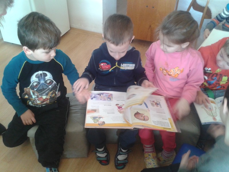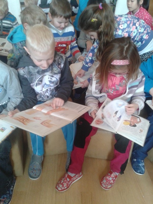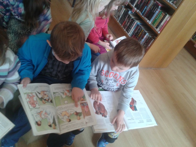 Třídu Sluníčka jsme seznámili s encyklopediemi o zvířátkách. Společně jsme si přečetli příběh od Aleny Soukupové O chytré myšce, která si vyrobila ze stébel rozhlednu a objevila píšťalku.