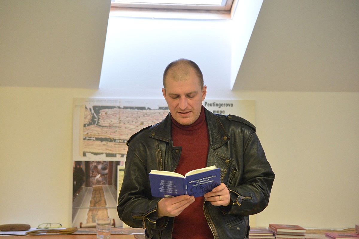 V rámci doprovodného programu nám přečetl ze své básnické sbírky Manifest Múzismu v češtině a němčině česko-rakouský básník a překladatel Ondřej Cikán.