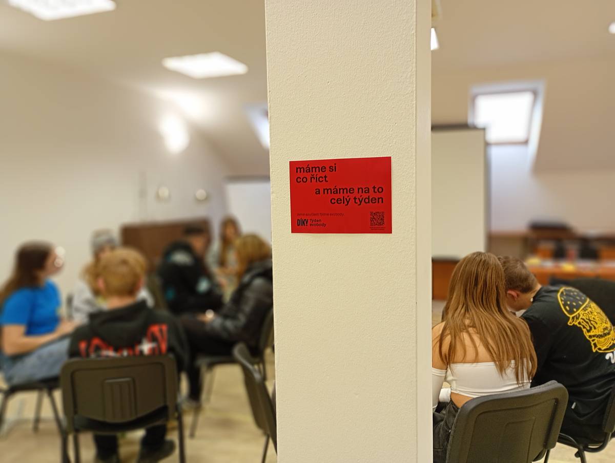 Zapojili jsme se také do Týdne svobody pořádaného neziskovou organizací Díky, že můžem (Korzo Národní) a pro žáky základních škol jsme připravili vzdělávací program „Chraňme demokracii“.