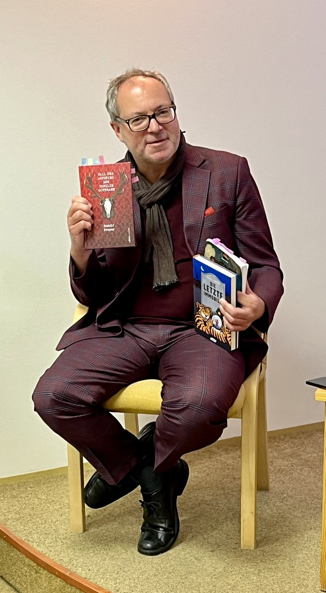 Ve čtvrtek 25. 4. 2024 proběhla v Městské knihovně Znojmo beseda pro studentky a studenty dvojjazyčných tříd Gymnázia Dr. Karla Polesného ve Znojmě. Hostem byl rakouský spisovatel a novinář Rudolf Preyer. Autor přečetl ukázky ze svých děl, povyprávěl o psaní knih a své práci v žurnalistice. Studenti měli možnost položit panu spisovateli otázky a pobavit se tak s rodilým mluvčím v německém jazyce. Děkujeme panu Preyerovi, studentům a pedagogům za příjemně strávené dopoledne.