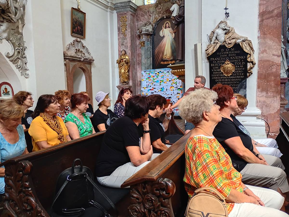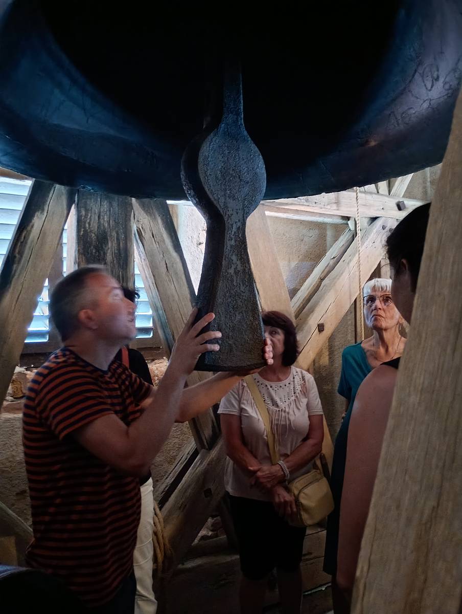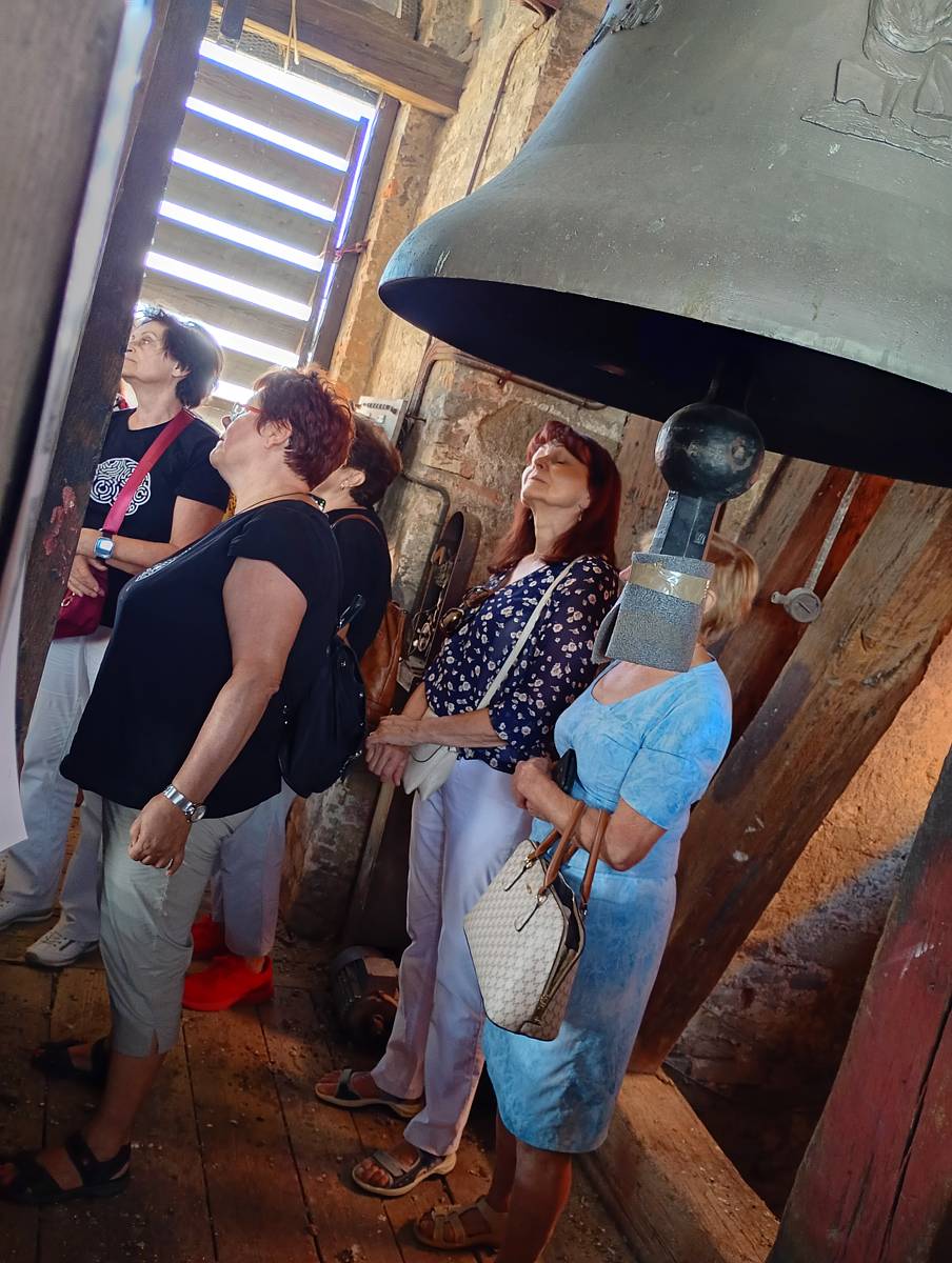 Ráno se účastníci sešli v konferenčním sále knihovny u kávy a po deváté hodině vyrazili na procházku za znojemskými zvony. Průvodcem jim byl pan Ing. Ondřej Lazárek, který poutavou formou představil nejprve největší zvon ve Znojmě, který se nachází ve věži při kostele sv. Michala, a následně soubor čtyř zvonů v kostele sv. Kříže, z nichž tři byly odlity teprve nedávno, v roce 2022. Účastníci se dozvěděli řadu nových a překvapivých informací jak z historie Znojma a samotných zvonů, tak z oblasti kampanologie, tedy vědy o zvonech. Výstup na obě věže i blízký kontakt se zvony a jejich tóny byly silným zážitkem, který v každém dozníval ještě během celého dne.