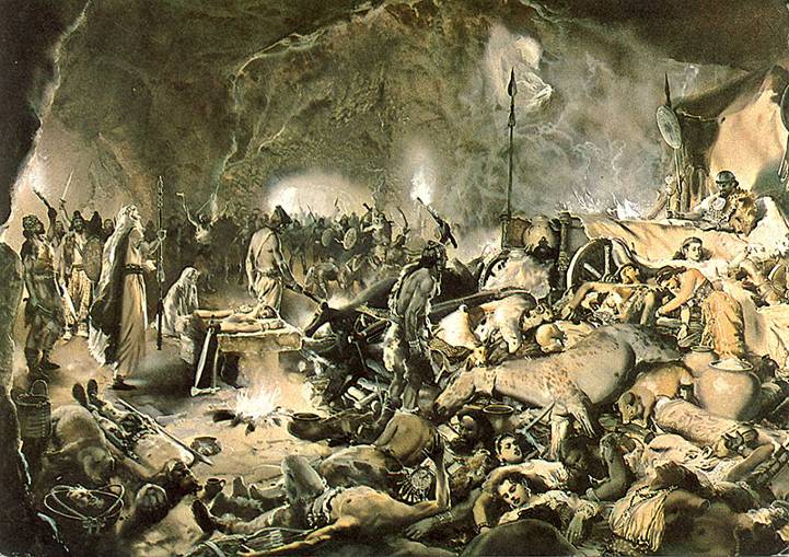 Během jejího zkoumání vynesl Wankel takové nálezy, o nichž archeologové dodnes nepřestávají diskutovat. Z podzemí se tehdy vynořily zbytky vozu se zdobenými kovovými ple-chy, velké množství luxusních šperků a uměleckých předmětů a také lidské kostry, které byly v jeskyni rozmetány. Nebyly to však kostry úplné – jednalo se o zbytky trupů bez hlav a konče-tin, jinde zase ležely jen ruce nebo lebky. Nechyběly zde ani roztříštěné kostry koní. Tím ale nálezy nekončily. Hlouběji v jeskyni našel Wankel něco, co dnešní odborníci nazývají meta-lurgicko-dílenský komplex: celé sady nářadí, materiálů a polotovarů pro pokročilou kovový-robu. Údiv